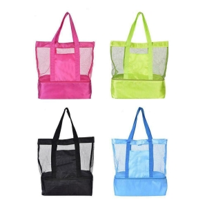 İki Bölmeli Soğutuculu File Plaj Çantası (Toptan Üretim)