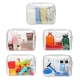 Bu özel çanta, seyahatlerinizde ve günlük kullanımda ihtiyaç duyduğunuz makyaj malzemelerini ve kişisel bakım ürünlerini düzenli bir şekilde taşımanızı sağlar. Şeffaf PVC yapısı sayesinde içerisindeki ürünleri kolayca görebilir ve hızla erişebilirsiniz. Ayrıca, su geçirmez özelliği sayesinde içindeki değerli eşyalarınızı korur ve her türlü hava koşulunda güvenle kullanabilirsiniz.